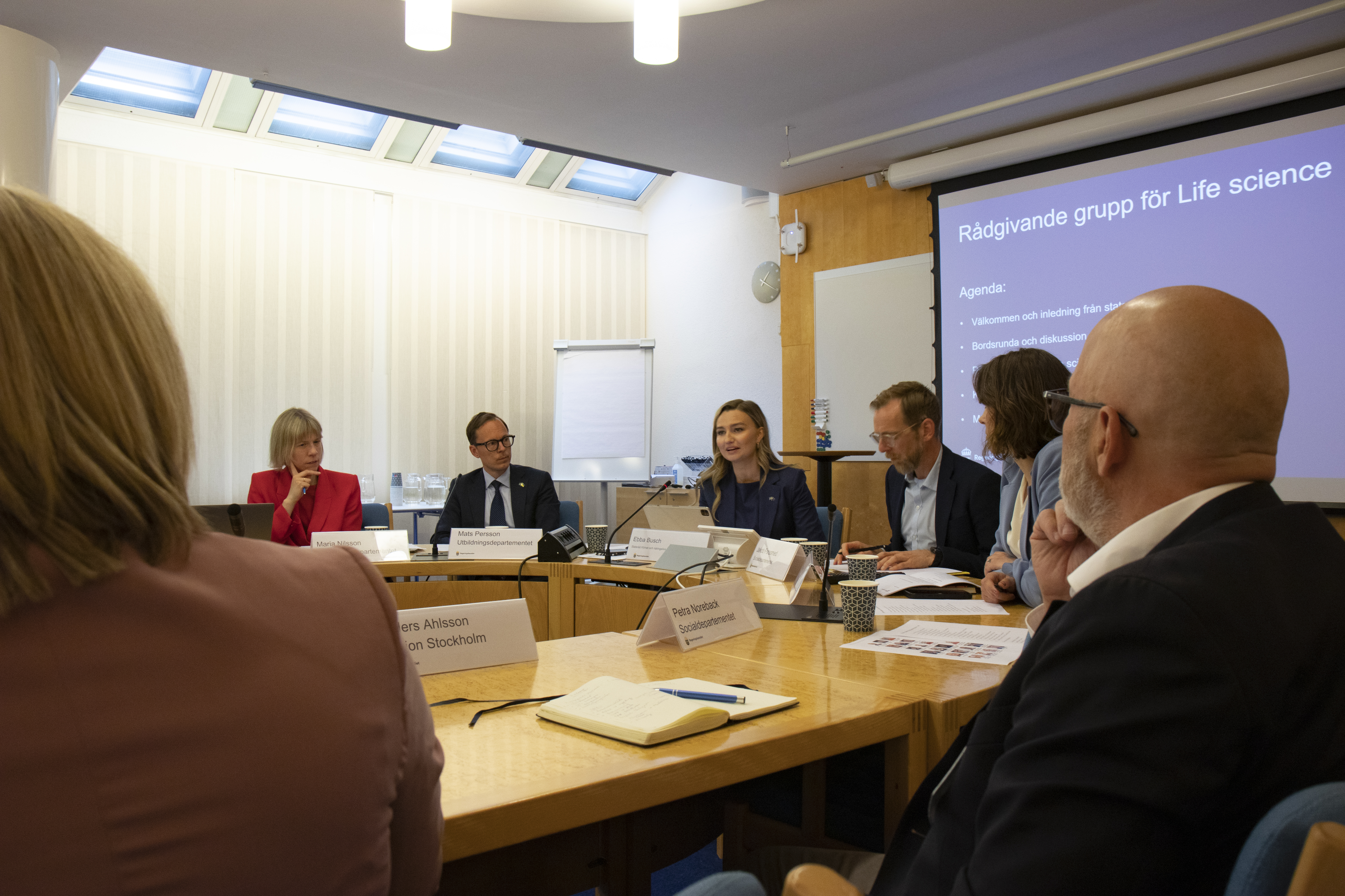Life science-sektorn har en betydande roll för svensk konkurrenskraft och att utveckla Sverige vidare som en ledande kunskaps- och forskningsnation. Den 11 juni bjöds den rådgivande gruppen för life science tillsammans med fyra myndigheter in av statsråden Busch, Forssmed och Persson, för att diskutera life science-områdets viktigaste frågor. Även statssekreterarna Modig, Nilsson och Noreback deltog.