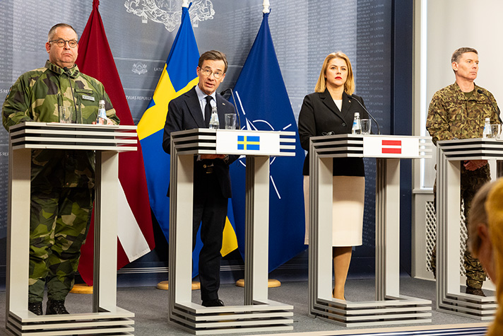 Från och med fredag den 7 februari underställs en svensk styrka Natos multinationella brigad i Lettland. Det uppmärksammades under fredagen med en överlämningsceremoni med deltagande av statsminister Ulf Kristersson, utrikesminister Maria Malmer Stenergard och försvarsminister Pål Jonson.