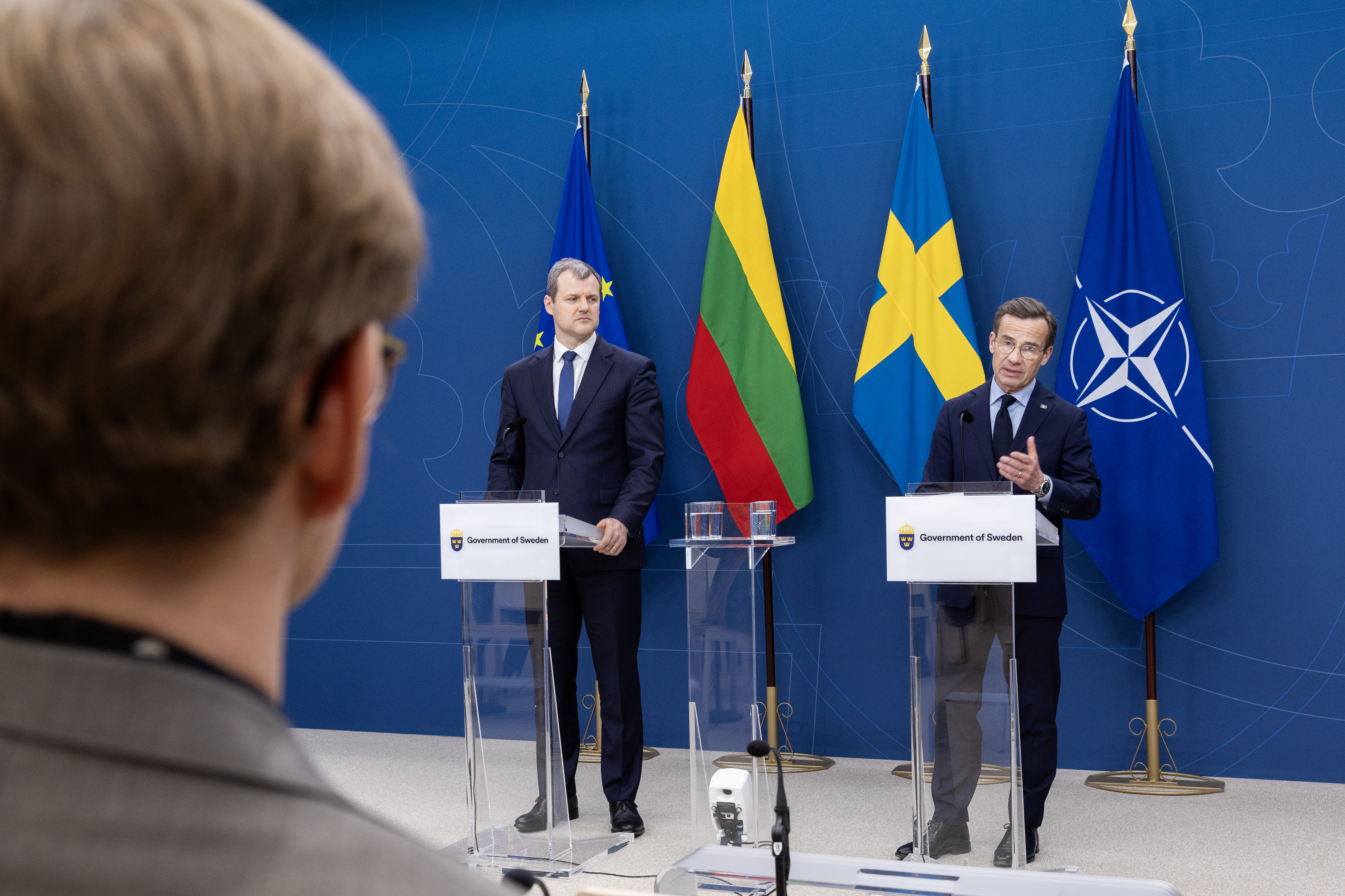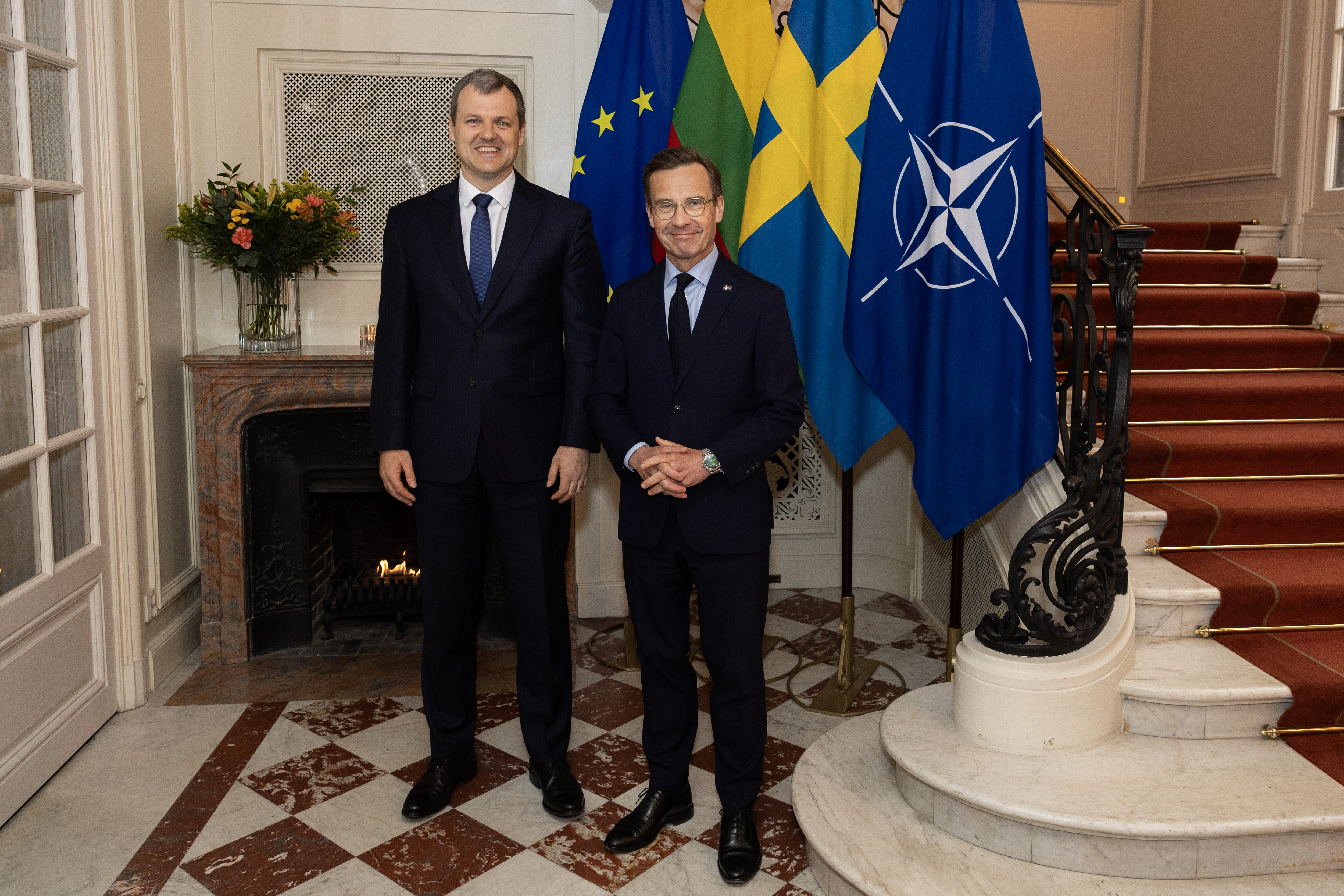 Tisdagen den 22 april tog statsminister Ulf Kristersson emot Litauens premiärminister Gintautas Paluckas för ett bilateralt möte i Sagerska huset. Efter mötet hölls en gemensam pressträff i Rosenbad.