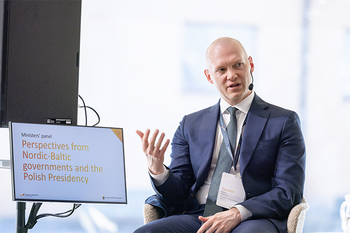 Finansmarknadsminister Niklas Wykman deltog därefter i ett panelsamtal tillsammans med ministrar från Lettland, Polen, Estland och Litauen.