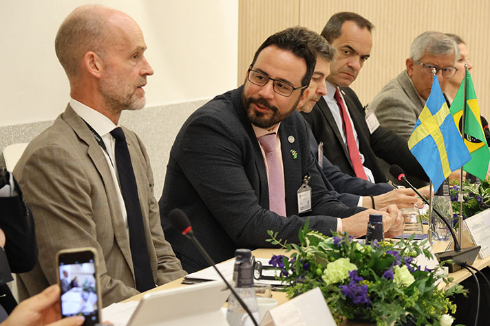 Statssekreterare Sara Modig tog emot en brasiliansk delegation ledd av Daniel Almeida Filho, statssekreterare för teknisk utveckling och innovation. De ledde årets högnivåmöte inom flygsamarbetet i Stockholm den 8 oktober. Även statssekreterarna Diana Janse och Peter Sandwall, från Utrikes- respektive Försvarsdepartementet deltog.