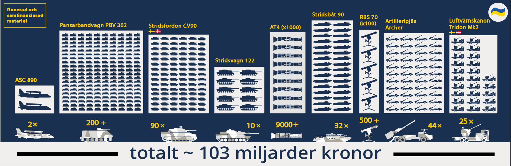 - Ammunition, utbildning och försörjning till ett värde av 3 miljarder kronor.