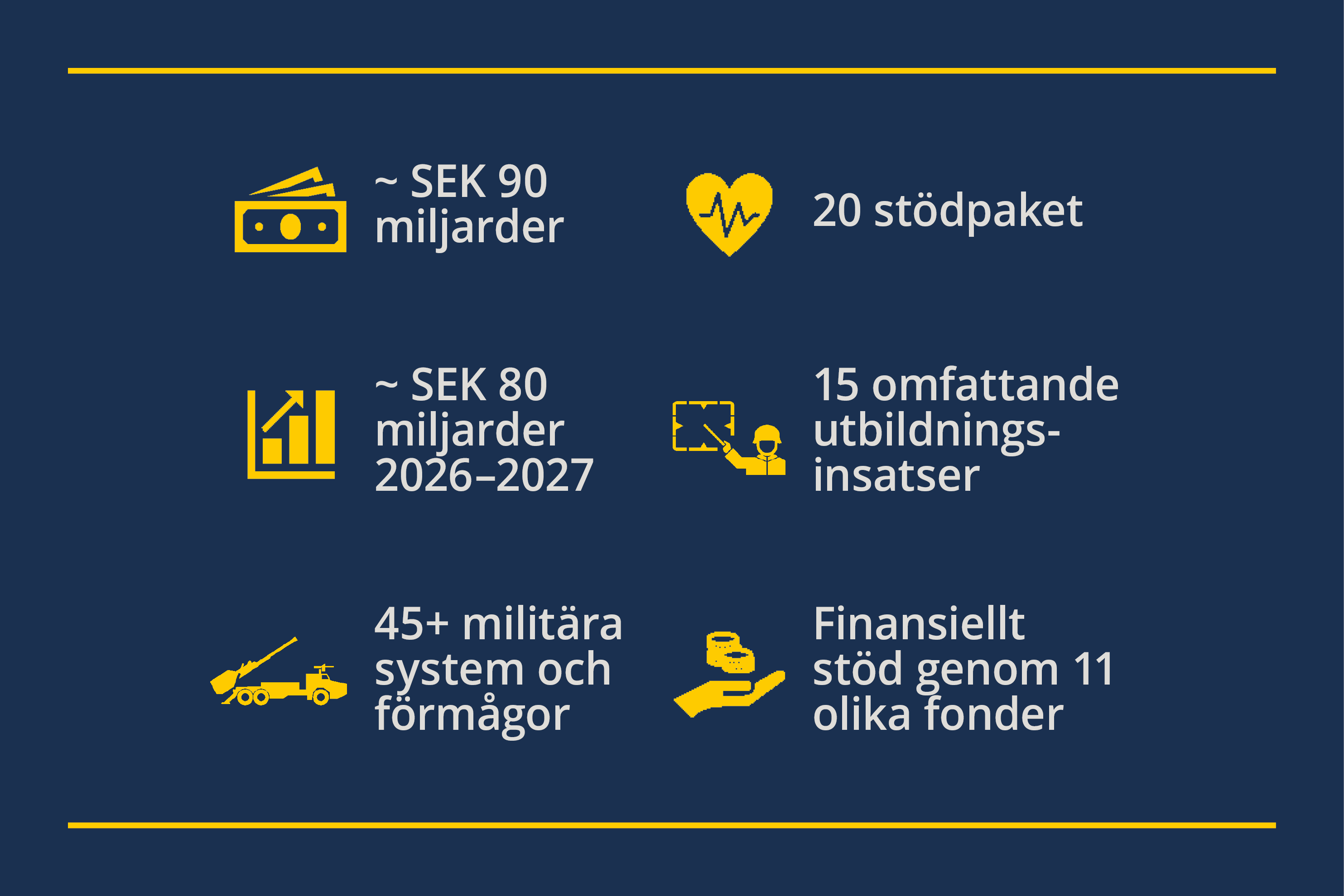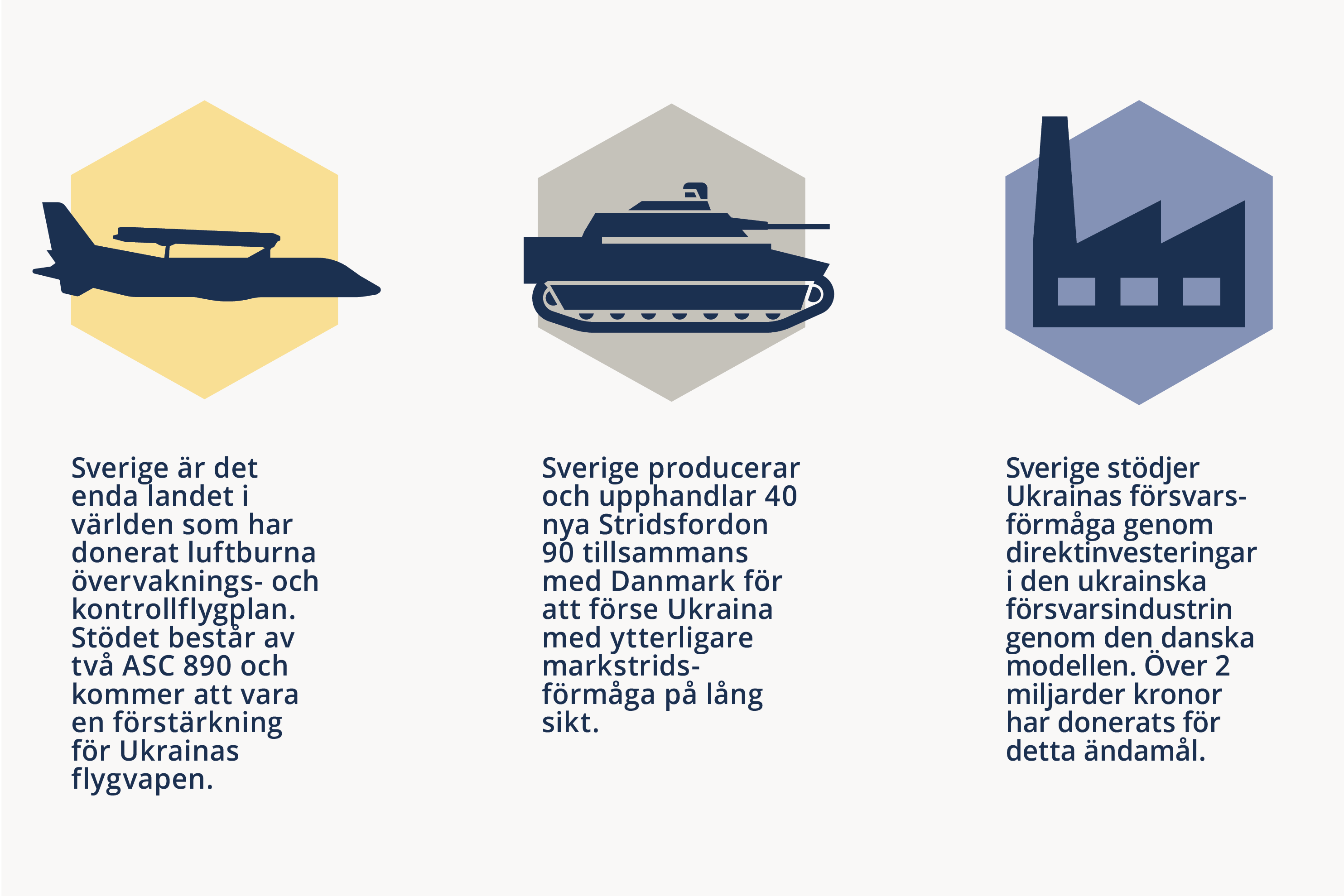 - Stöd till Ukrainas totalförsvar till ett värde av 200 miljoner kronor.