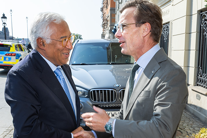 Måndag den 8 september tog statsminister Ulf Kristersson emot Europeiska rådets ordförande António Costa i Stockholm. Under en arbetslunch diskuterade de frågor som kommer vara högt upp på EU-dagordningen framöver. Även EU-minister Jessica Rosencrantz deltog.