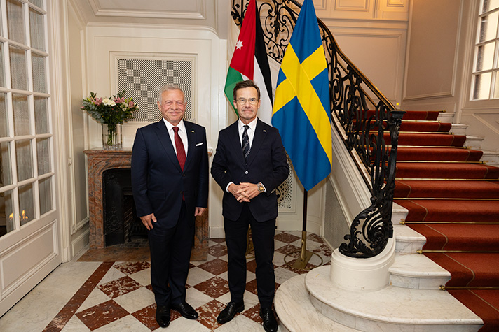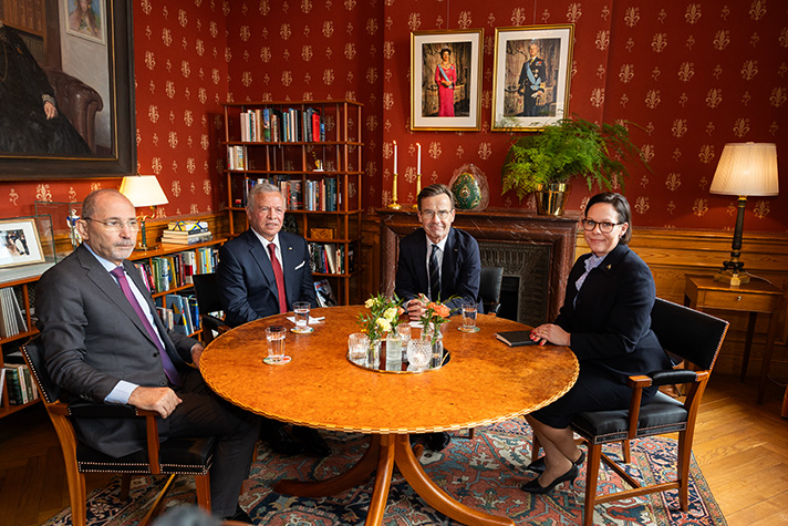 Tisdagen den 7 oktober tog statsminister Ulf Kristersson emot Jordaniens kung Abdullah II, för lunchöverläggningar i Stockholm. Vid mötet deltog även Jordaniens utrikesminister Ayman Safadi och utrikesminister Maria Malmer Stenergard.