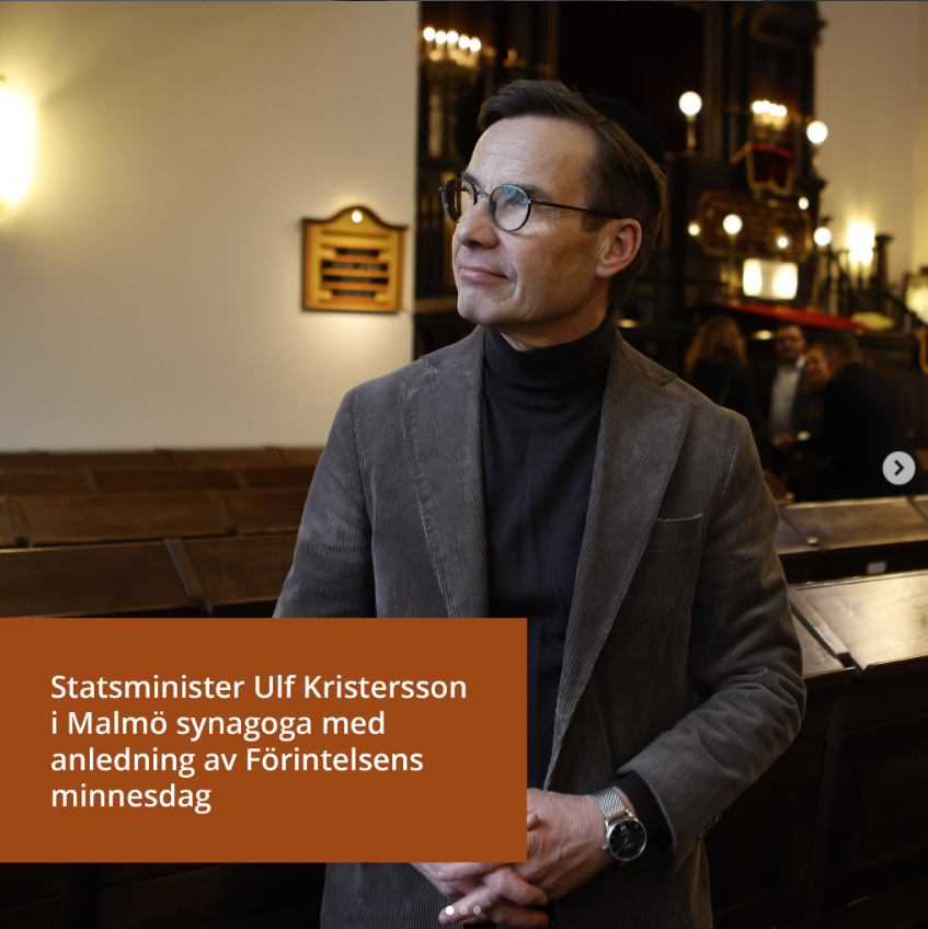 Statsminister Ulf Kristersson i Malmö synagoga med anledning av Förintelsens minnesdag