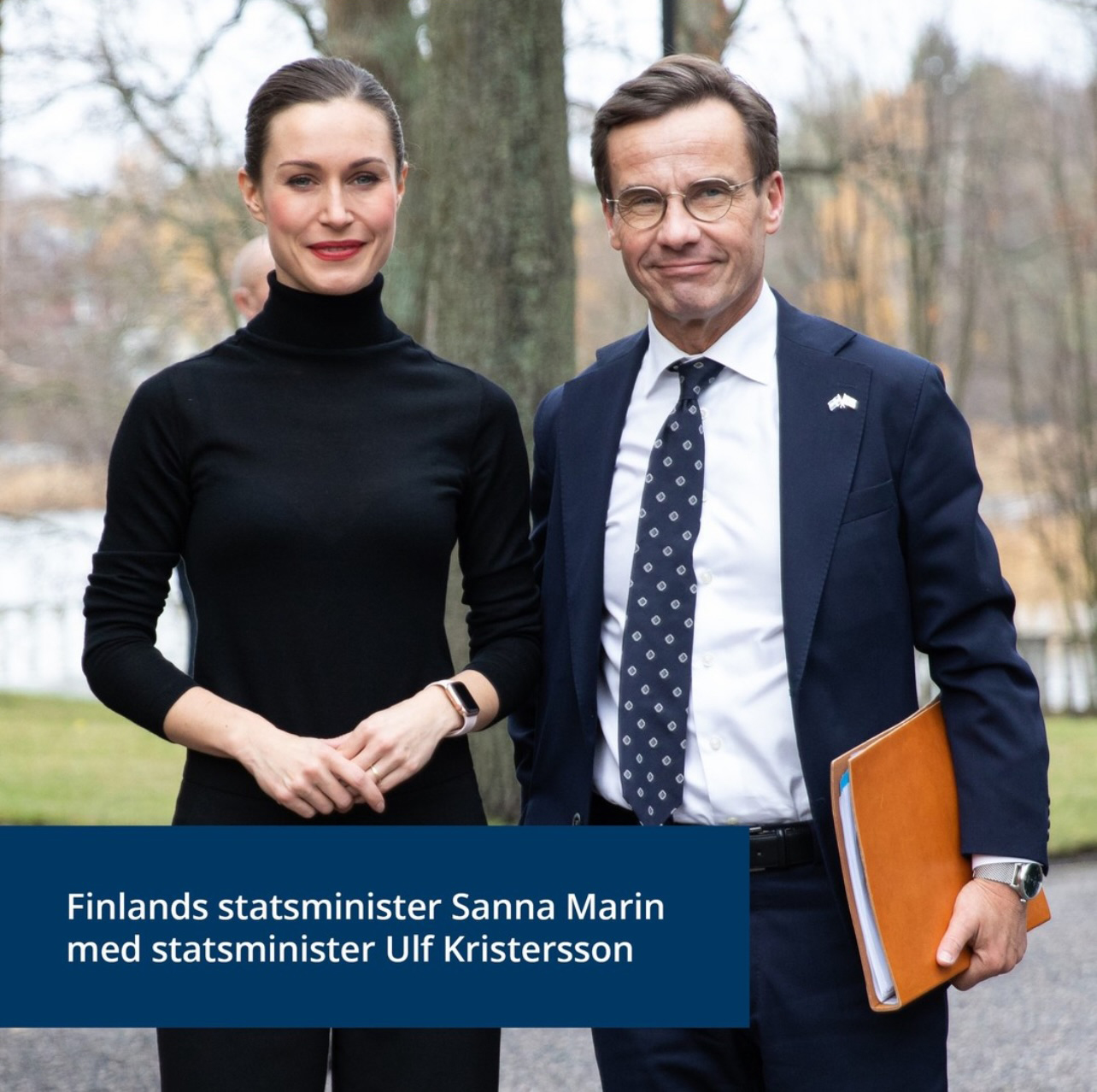 Finlands statsminister Sanna Marin med statsminister Ulf Kristersson