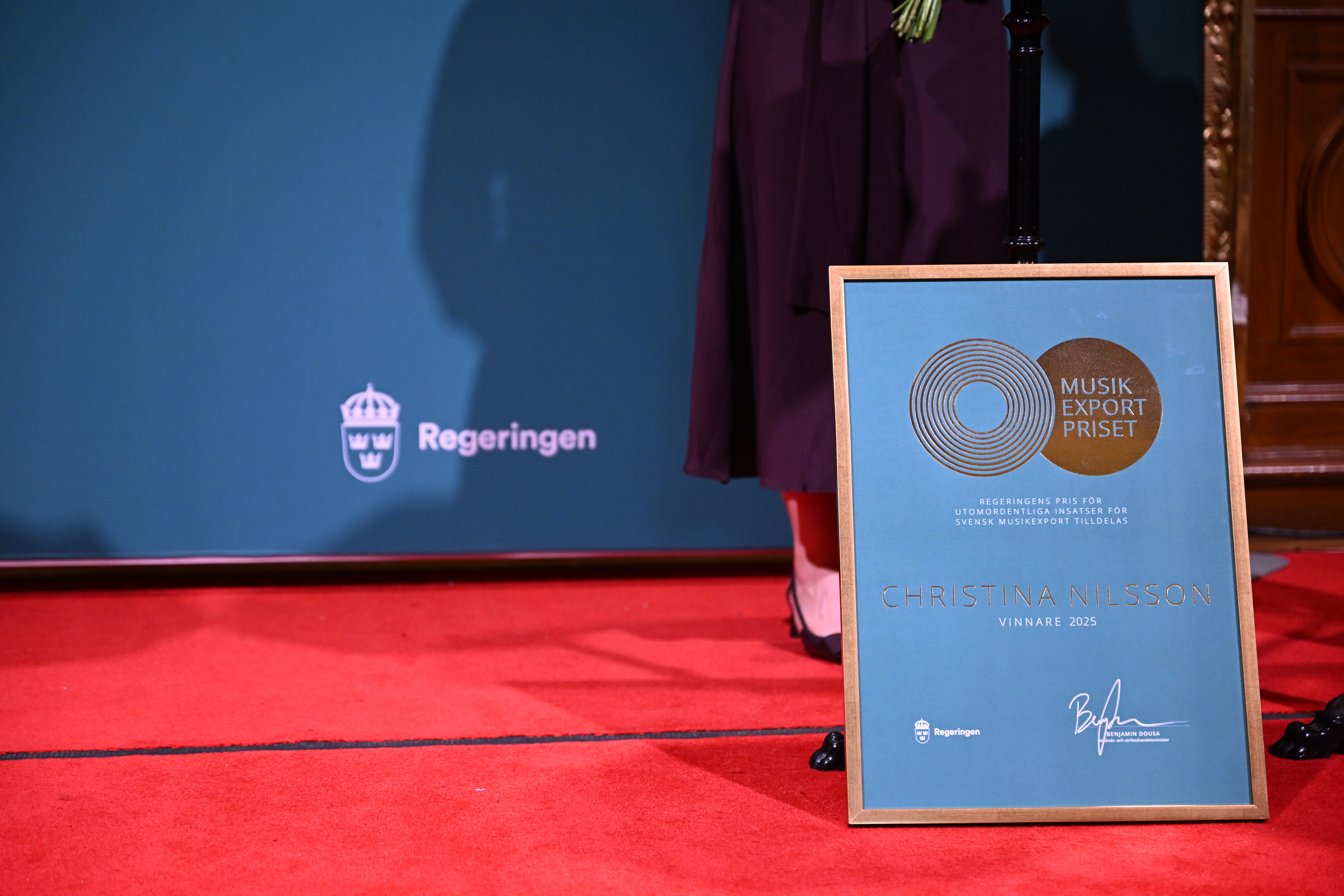 Bistånds- och utrikeshandelsminister Benjamin Dousa har delat ut regeringens musikexportpris till Christina Nilsson. Regeringens hederspris tilldelades The Hives och regeringens hedersomnämnande tilldelades produktionsbolaget MXM för Projektet Taylor Swift.
