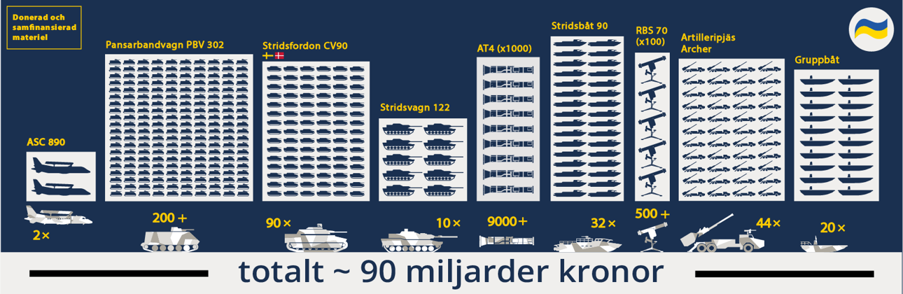 - Donationer av materiel från Försvarsmakten till ett värde av drygt 500 miljoner kronor.