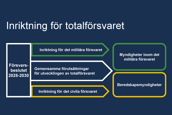 Regeringens beslut om gemensamma förutsättningar för utvecklingen av totalförsvaret 2025–2030 innehåller inriktande planeringsförutsättningar för myndigheter inom militärt försvar och civila beredskapsmyndigheter.